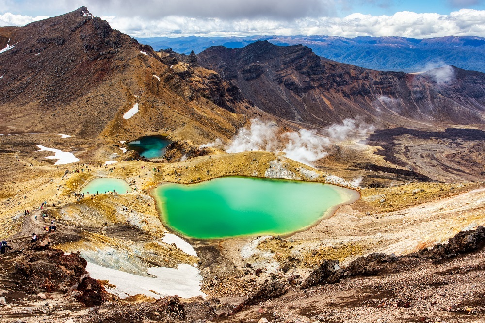 You will witness steaming fumaroles, ancient explosion craters, and the stunning contrast of the Emerald Lakes against the raw, dark rock of the mountainside.